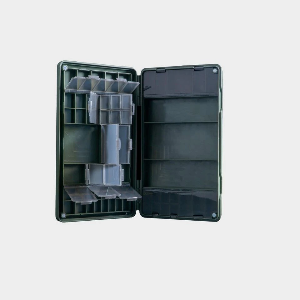 The Armoury Lite Tackle Box has 57 storage compartments for lightweight organization of terminal tackle. It’s weather-resistant, robust, and compatible with RidgeMonkey Ruggage.